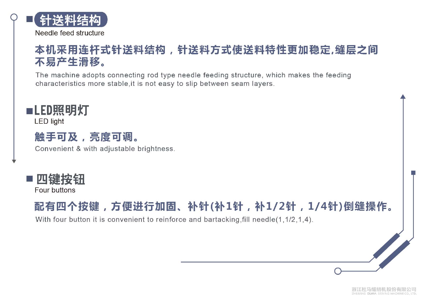 Intelligent Needle feed single needle lockstitch with double step motor driving